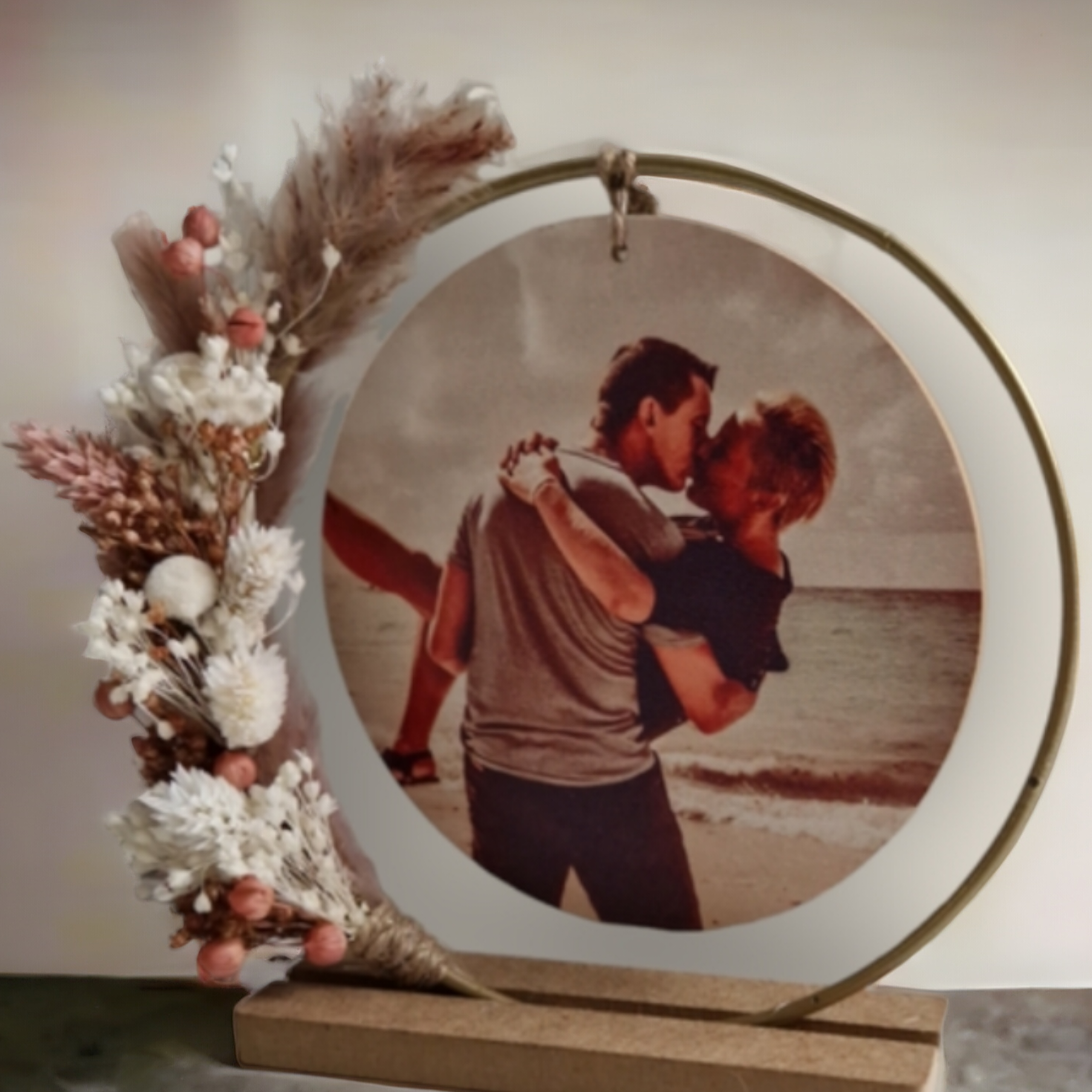 Houten fotoplankje met vaasje € 19,50