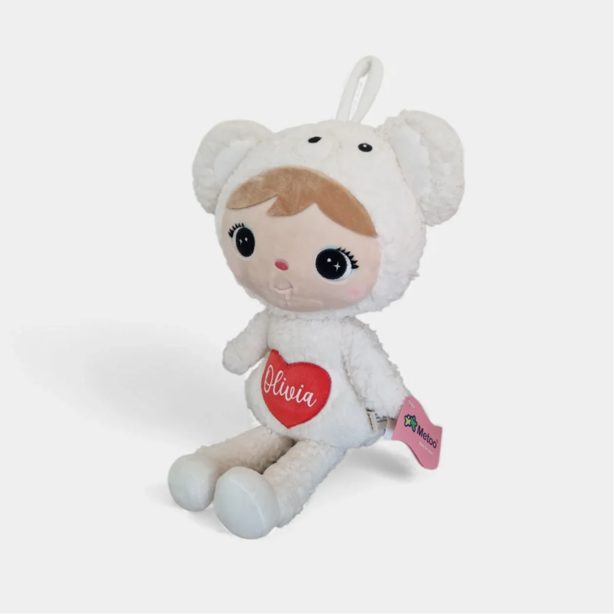 Een zachte Metoo ijsbeer knuffel met naam, een groot en knuffelbaar cadeau met een persoonlijke touch. De naam wordt mooi aangebracht op het hartje, waardoor de knuffel extra speciaal wordt.