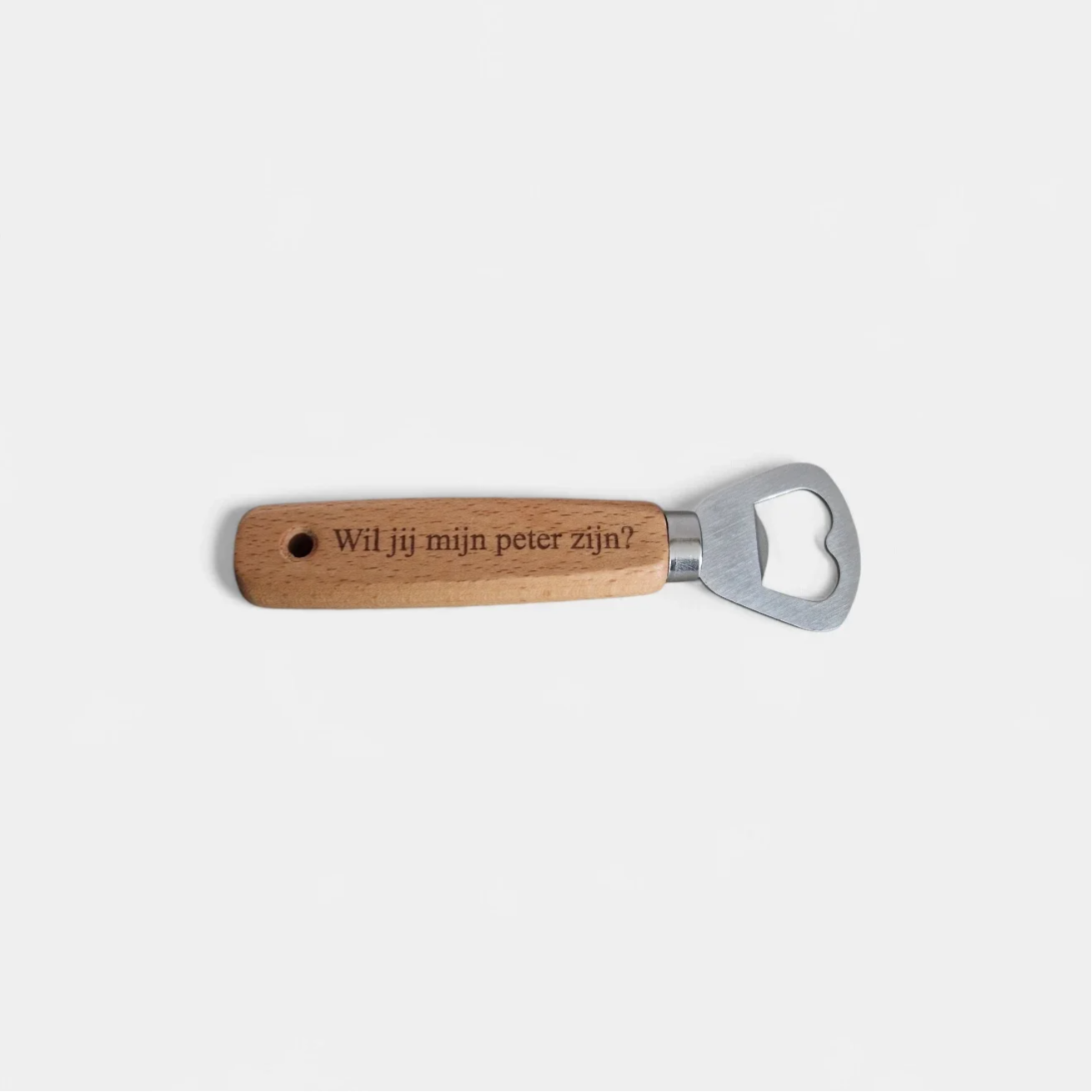 Origineel en betaalbaar cadeau om een peter te vragen. Deze houten flesopener met boodschap is een leuke en praktische verrassing die meteen een blijvende herinnering wordt. Perfect om op een unieke manier jouw vraag te stellen.