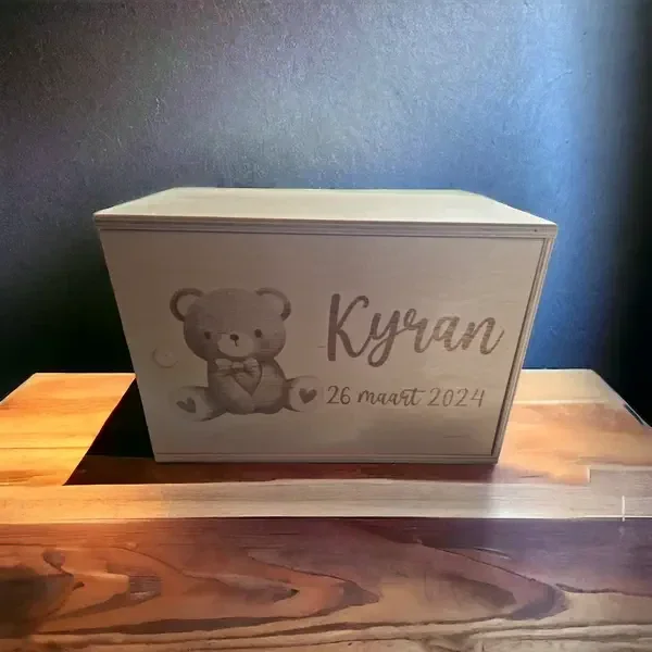 De gravering maakt deze doos uniek en persoonlijk, waardoor het niet alleen een opbergbox is maar ook een blijvend aandenken.
