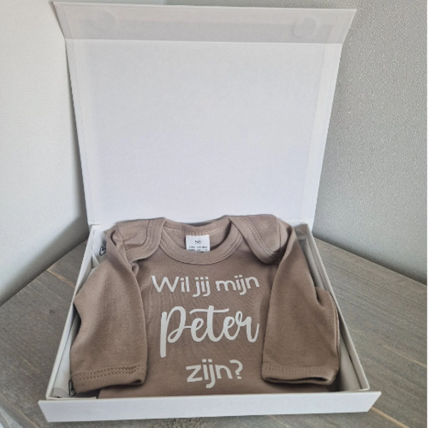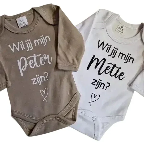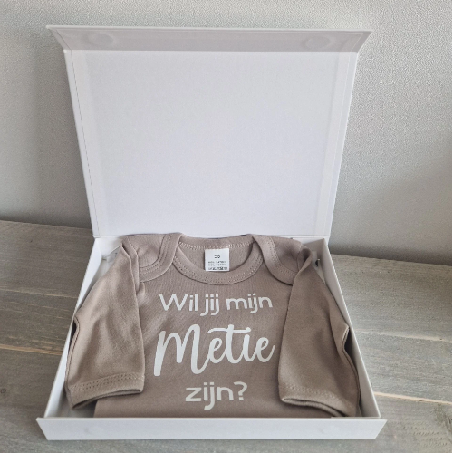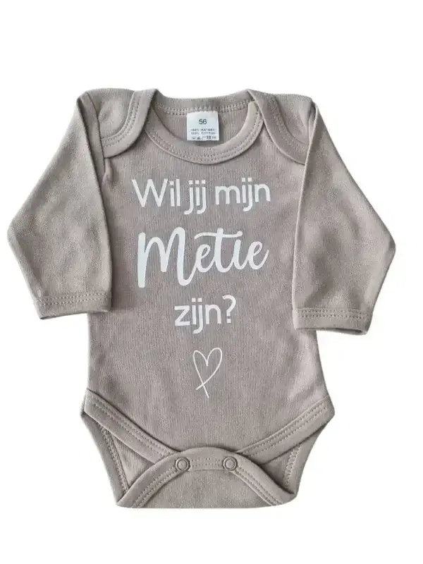 Deze schattige romper is het perfecte cadeau om de meter of peter van je kindje te vragen. Deze leuke body wordt bedrukt met de vraag "Wil je mijn metie/peter zijn?"