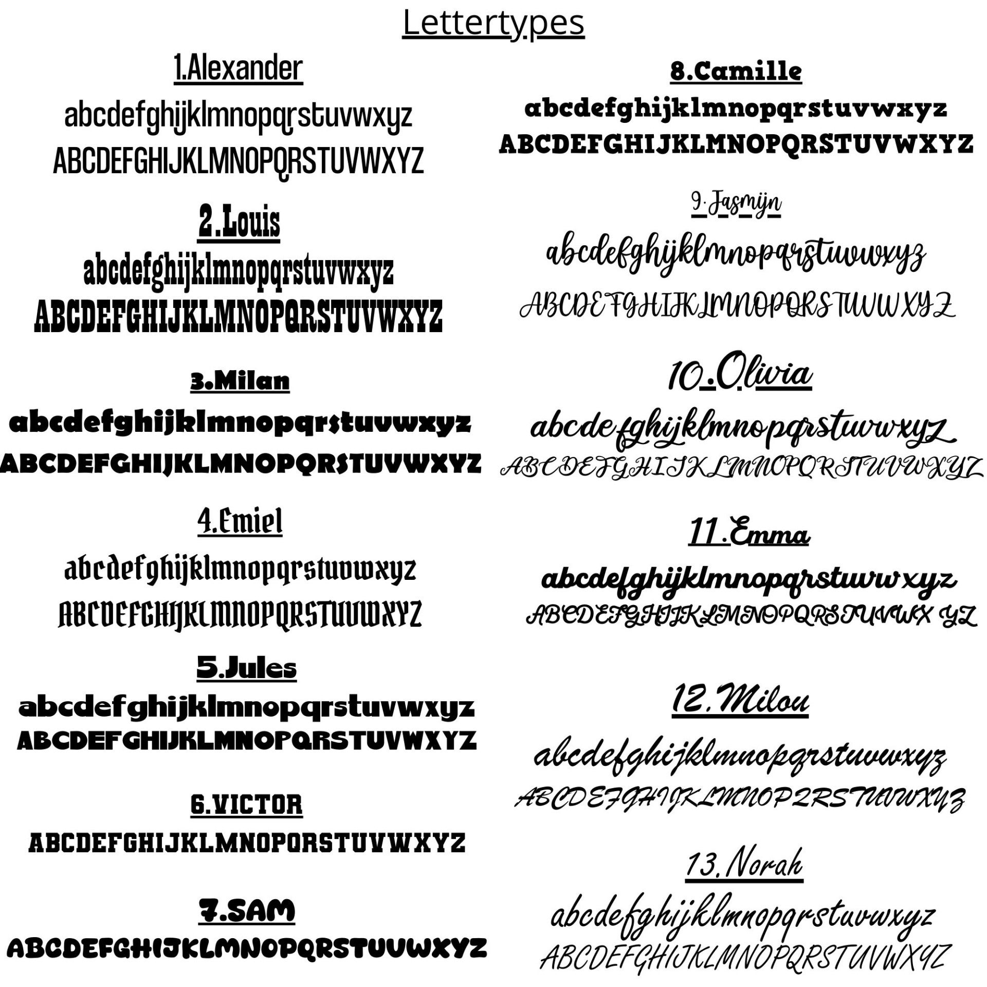 Indien je kiest voor bedrukking met naam kan u hier de kleur en lettertype bedrukking noteren.
