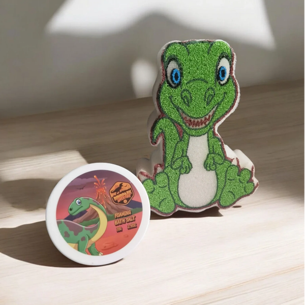 Maak badtijd leuk en avontuurlijk met dit stoere dino geschenksetje. Dit setje bevat een coole dino-spons en badzout om van elke badsessie een feestje te maken.