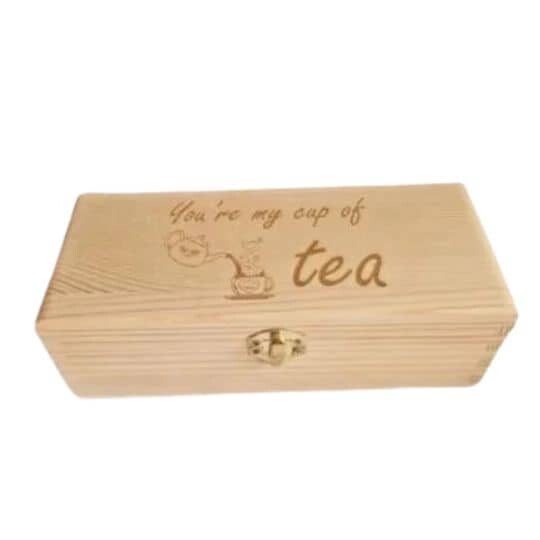 Breng warmte en stijl naar je thee-ervaring met onze prachtige gepersonaliseerde theedoos. Met de mogelijkheid om jouw naam, een speciale boodschap of een betekenisvolle datum toe te voegen, is deze theedoos niet alleen een stijlvol accessoire maar ook een uniek cadeau voor jezelf of een dierbare.