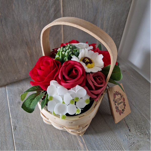 Breng een vleugje elegantie in huis met dit prachtig zeepbloemenboeket in rieten mandje. perfect als cadeau voor diverse gelegenheden. Je kunt de bloemen als decoratie laten staan, maar je kunt ook losse bloemblaadjes gebruiken als gastzeep of in een romantisch bad. Twee vliegen in één klap: stijlvol & functioneel.