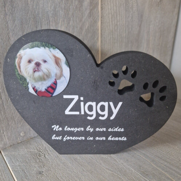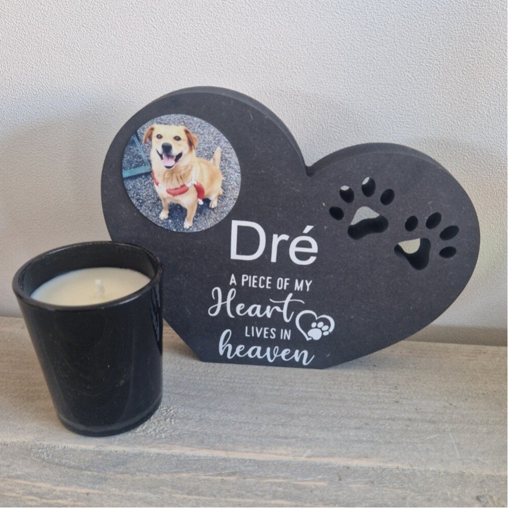 Verlies kan hartverscheurend zijn, maar dit elegante herinneringshart in hartvorm helpt herinneringen tastbaar te maken. Met foto en naam van je geliefde hond is dit subtiele aandenken een warme troostplek voor op de kast, bij de urn of in een speciaal hoekje.