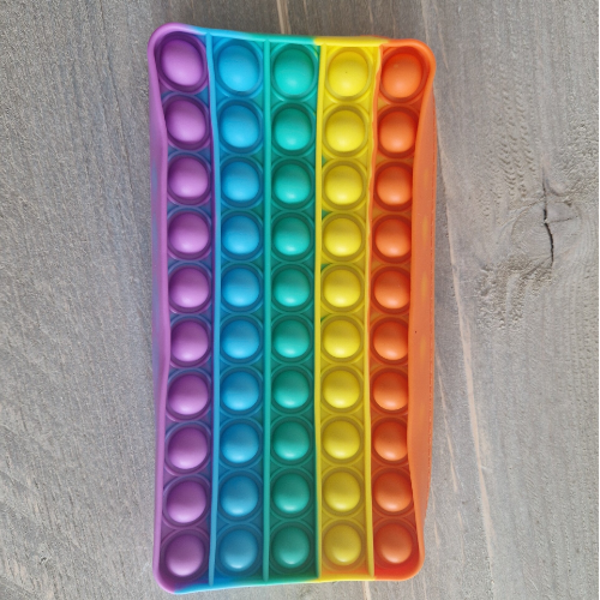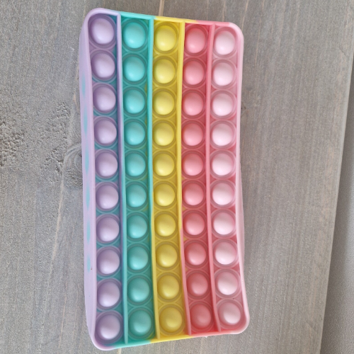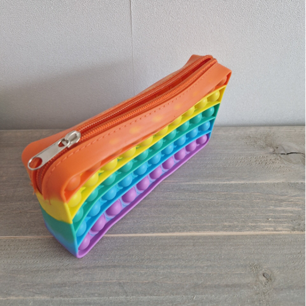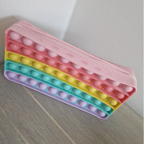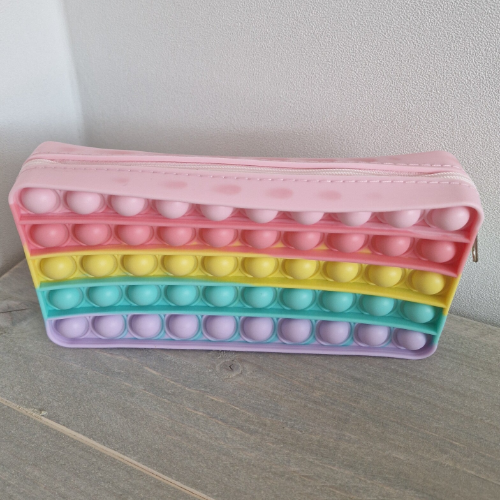 Deze kleurrijke Pop It pennenzak is niet allen superhandig voor je pennen, stiften en gummen maar ook megaleuk om met te friemelen. Dankzij de ingebouwde fidget bubbles kun je eindeloos poppen tijdens stressvolle lessen.