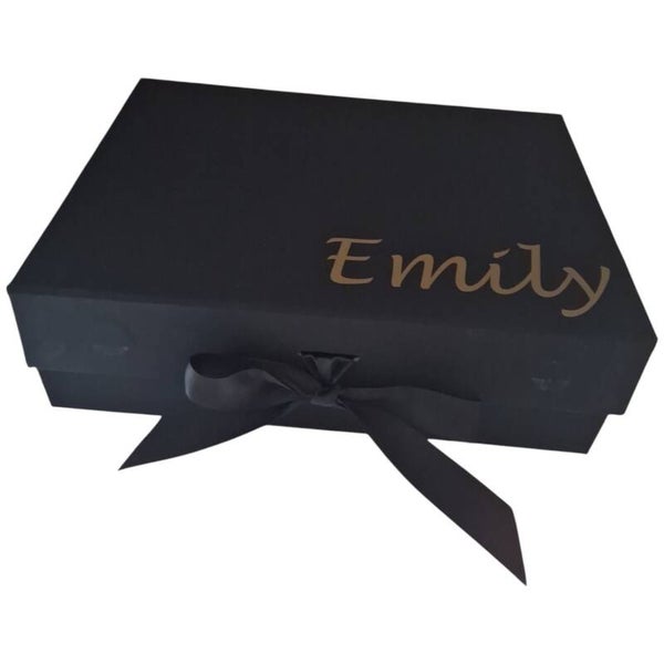 Wil jij je bruidsmeisjes op een originele manier vragen? Met deze stijlvolle bridesmaid box met naam maak je er een onvergetelijk moment van. De zwarte cadeaudoos is afgewerkt met gouden letters en kan volledig gepersonaliseerd worden met de naam van jouw vriendin. Binnenin vind je een luxe samenstelling met o.a. zonnebril, gepersonaliseerde toilettas, cavaglas met naam en zeeproosjes – ideaal om jouw waardering te tonen.