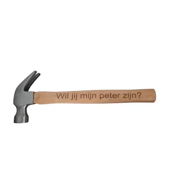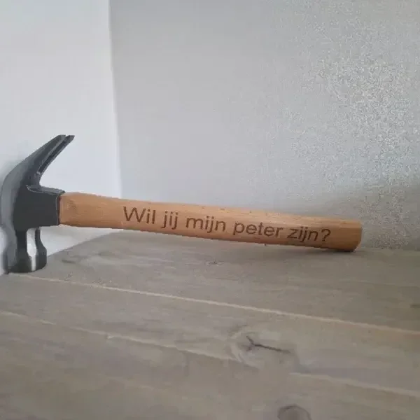 Laat een eigen tekst, naam of boodschap graveren op het houten handvat, van grappig tot ontroerend, en maak van deze hamer een uniek stuk dat niemand anders heeft.