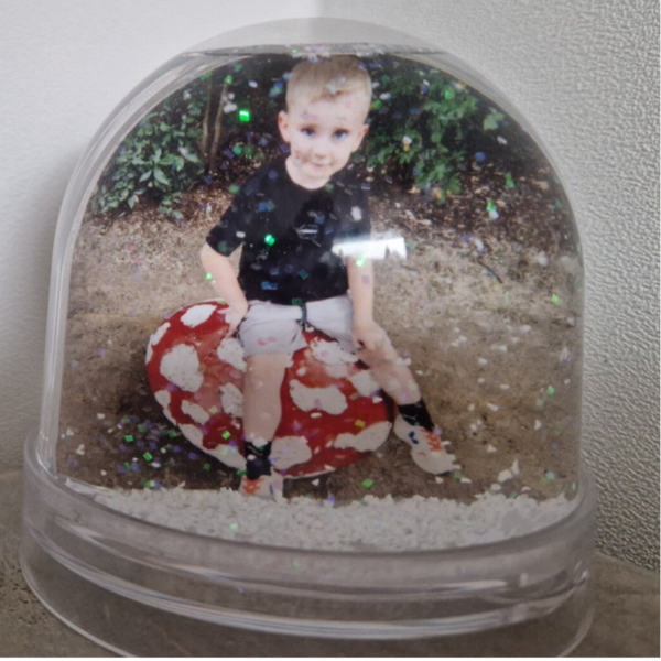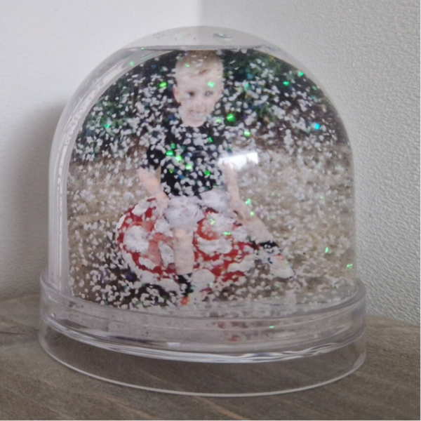 De bol wordt gevuld met glitters die zachtjes dwarrelen wanneer je hem schudt, waardoor jouw foto extra tot leven komt. Perfect voor verjaardagen, meter/peter-cadeaus, geboortecadeaus, kerst of gewoon… omdat het kan.